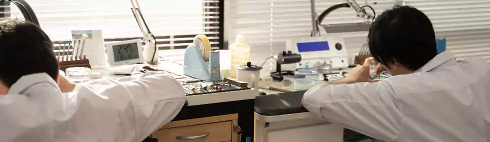 Jewel Cafe’s in-house watch repair workshop is home to a team of first-class watchmakers. Thanks to our skilled technicians and the latest equipment, we are able to perform everything from disassembly and cleaning to scratch removal and glass replacement.